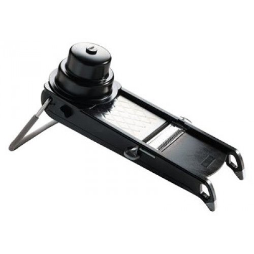 Mandolina affetta verdura corredata di n° 2 pettini con doppia funzione. Colore: Nero. La Mandolina ha un telaio in acciaio inox con parte posteriore pieghevole. Doppia lama orizzontale: liscia e ondulata Doppio pettine di 4 e 10 mm, e di 2 e 7 mm. Carello affetta verdure e frutta