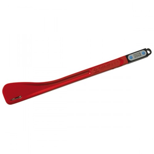 Questa spatola termometro permette di mescolare e controllare la temperatura delle operazioni di pasticceria direttamente nel recipiente di cottura.temperatura -50°+200°C termometro amovibile, resistente agli spruzzi d'acqua. E' possibile lavare la spatola in lavastoviglie una volta tolto il termometro dal proprio alloggio.