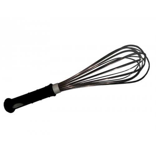 Frusta professionale da cm. 25 composta da 8 fili di acciaio inox di con un manico indeformabile in fibra di vetro, resistente fino a 250° C La misura è comprensiva di manico