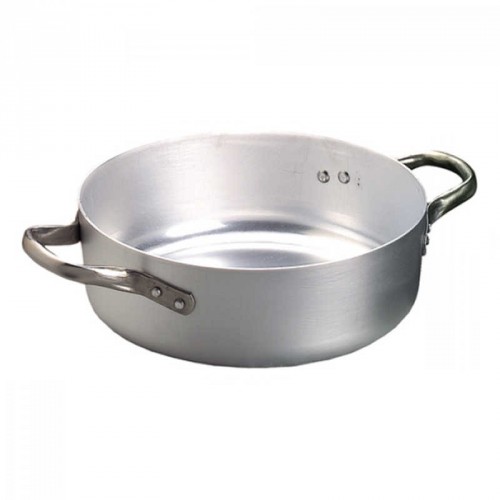 L'alluminio è un materiale leggero e ad alta conducibilità termica, che permette al calore di distribuirsi uniformemente sul fondo e sulle pareti, in modo da evitare surriscaldamenti e alterazioni dei cibi. Appena acquistato il pentolame deve essere "condizionato", ossia lavato ed asciugato. Casseruola bassa in alluminio spessore 3 mm. 2 manic1 diametro cm.36 altezza cm.12 capacità lt. 12