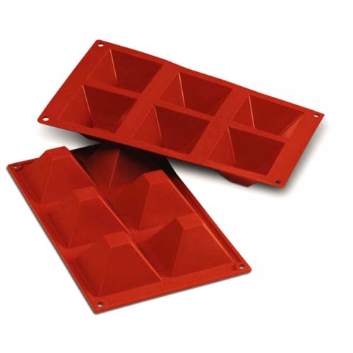 Stampo in silicone Piramide mm.71x71 altezza mm.40h. -06 forme per foglio Confezione da 2 pezzi. Sono stampi pratici , ideali sia per la surgelazione che per la cottura. Possono essere utilizzati a temperature che variano da -50°C a +260°. Facili da lavare sia a mano che in lavastoviglie. Formato 17,5x30cm equivalente a 1/3 Gastronorm ed a 1/4 del formato della teglia da pasticceria(cm60x40). Realizzati in purissimo silicone conforme alle norme internazionali che regolano l utilizzo di materiali destinati al contatto con sostanze alimentari.