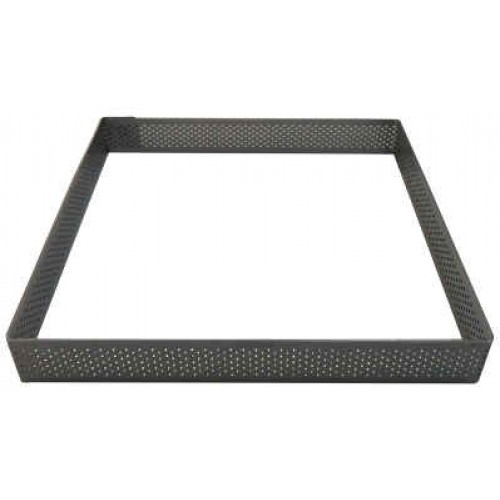 Quadrato inox microforato cm.15x15x2h, queste fasce particolari permettono di ottenere delle crostate dalla finitura perfetta. La presenza dei microfori permette di ottenere i bordi regolari con angoli della torta ben marcati, e una doratura ottimale dei fondi.