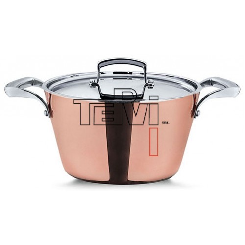 Casseruola in rame e acciaio inox cm.24 con due manici Le casseruole sono realizzate in un multistrato di rame alluminio e acciaio. Vengono costruite con metalli diversi, per sfruttare le migliori caratteristiche di ciascun materiale. Il pentolame è realizzato in rame esterno, che garantisce alta conducibilità termica, uniformità di temperatura e l'interno in acciaio che facilita la cottura l'igienicità e la pulizia. Il doppio fondo inox, termico sandwich, idoneo per tutti i piani di cottura, incluso l’INDUZIONE. I manici sono ergonomici in fusione di acciao inox 18/10, resistenti a calore. Idonei per l’utilizzo in forno. La casseruola è uno strumento utile per tante ricette e differenti tecniche di cottura: dalle salse alla preparazione di cibi di piccole dimensioni, perfetta per stufare, brasare e preparare risotti.