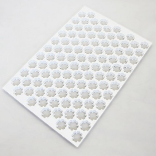 Placca taglia biscotti in plastica bianca per alimenti ideale per pasta frolla - dimensioni della placca cm.58x39 - disegno quadrifoglio cuore da mm.35. Si tagliano in modo semplice e veloce 105 biscotti.