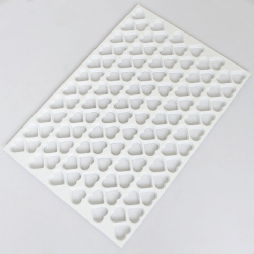Placca taglia biscotti in plastica bianca per alimenti ideale per pasta frolla - dimensioni della placca cm.58x39 - disegno geometrico cuore da mm.35. Si tagliano in modo semplice e veloce 116 biscotti.