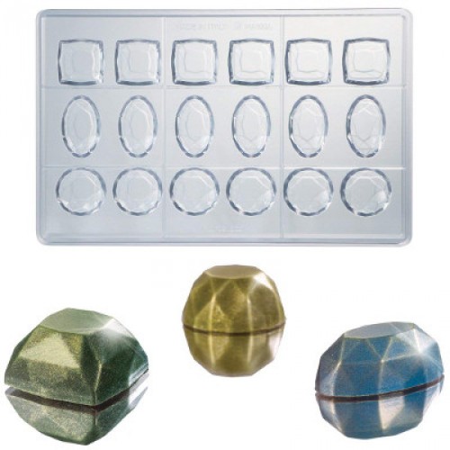 Stampo in policarbonato per creare preziose praline a forma di gemma. La confezione contiene uno stampo con Gemme assortite per un totale di 24 gemme