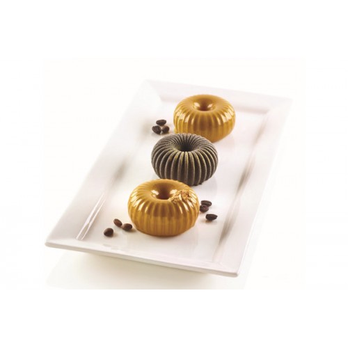 Mini Raggio: Monoporzioni dalla forma essenziale, esaltata da un tocco di originalità per portare un ventaglio di nuovi sapori in cucina. Grazie alla particolare trama a raggiera potrete ottenere una decorazione raffinata e di grande effetto. Ciascuna cavità dello stampo Mini Raggio della linea 3Design di Silikomart è provvista di una rivoluzionaria bordatura interna che conferisce una leggera forma arrotondata alla base delle vostre preparazioni. Mini Raggio garantisce risultati impeccabili non solo in versione semifreddo e mousse, ma anche in versione cotta.;Misure: Ø 67 h 33 mmVolume: 6x85 ml;