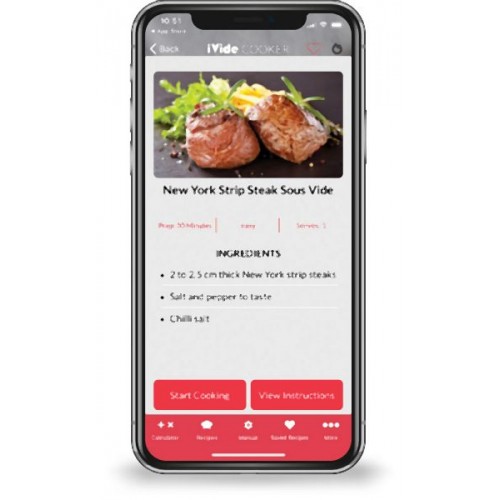 iVide Sous Vide Stick 2.0 - 230V / 1200W - 63x97x (H) 344mm, 222645, 8711369222645Custodia impermeabile sec.Standard IPX7.Per un funzionamento sicuro, il Sous Vide Stick si spegne automaticamente quando viene rimosso dal bagnomaria.Controllo WiFi possibile, app disponibile per dispositivi iOS e Android.L'app aiuta gli utenti a calcolare il tempo e la temperatura perfetti, incluse oltre 600 ricette preinstallate.La temperatura può essere impostata tra 52ºC e 902ºC con incrementi di 0,12ºC.Può riscaldare e far circolare fino a 30 litri di acqua.Può far circolare 12 litri di acqua al minuto.Lo schermo luminoso mostra la temperatura e il tempo di lavoro, facile da usare.