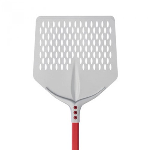 Pala per pizza quadrata forata da cm 41X41 manico 1,5 mt in alluminio anodizzato made in italy modello professionale leggera e robusta