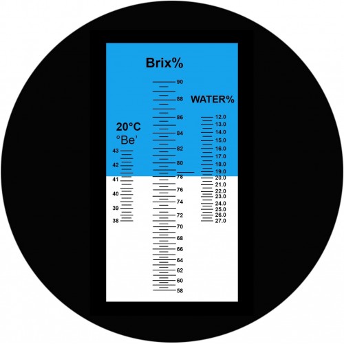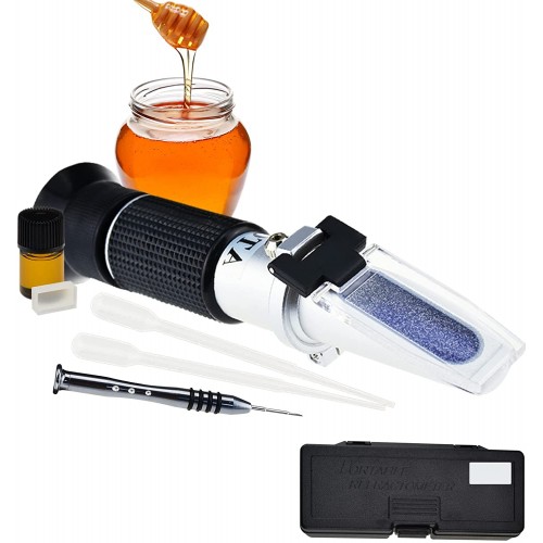 Questo tipo di rifrattometro indicato per il miele è progettato per misurare gli indici comuni di MIELE: alto contenuto di zucchero, Determina la percentuale di acqua nel miele misurando l'indice di rifrazione.Esso (misuratore di miele) ha una scala nell'intervallo 12 ~ 27% per la misurazione dell'umidità del miele. La risoluzione di lettura è dell'1%. Le altre due scale offrono la possibilità di leggere il contenuto di zucchero.Questo rifrattometro è progettato per lavorare con liquidi zuccherini ad alto contenuto di zucchero, miele, gelatina, marmellata e sciroppo per aiutare a monitorare e controllare le concentrazioni di zucchero in alimenti e bevande. È ideale per l'apicoltura, l'industria alimentare, per scopi agricoli ed educativi.Facile e molto comodo da usare. Posizionare alcune gocce del liquido sulla parte ottica del rifrattometro, coprire il prisma (il liquido si diffonderà più facilmente sul prisma), guardare attraverso l'oculare contro la luce (mettere a fuoco, se necessario) e si sarà in grado di leggere il valore del risultato sulla scala.