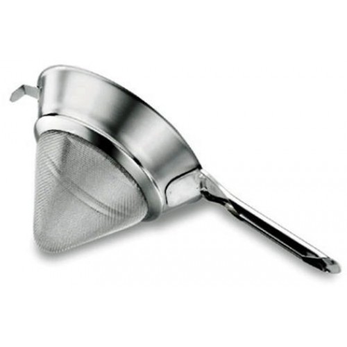 Colino professionale cinese con maglia fina acciaio inox conico da 20 cm. in acciaio inox - filtra finemente e incanala nel contenitore sottostante. Serve per colare creme di uova e salse, passare purè di verdura, filtrare liquidi.