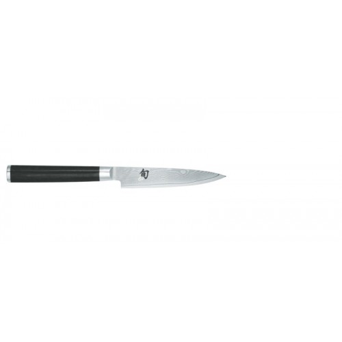Coltello Universale Kay serie Shun Classic lama cm.10, impugnatura cm.10,4 La serie dei coltelli Shun appartiene alla gamma dei coltelli damascati e riscuote grande successo presso l‘élite culinaria e gli ambiziosi cuochi professionisti. I coltelli professionali Shun sono realizzati con uno strato interno in acciaio VG MAX estremamente resistente alla corrosione, molto duro (61±1 HRC, 1,0% di carbonio, 1,5% di cobalto) che mantiene la lama sempre affilata in modo ineguagliabile. La parte esterna delle lame è realizzata in acciaio inossidabile damascato di nuova generazione, a 32 strati. Grazie alla superficie convessa della lama e all’affilatura manuale di ogni coltello Shun si ottiene un taglio incomparabile, che lascia scivolare il coltello anche attraverso gli alimenti più difficili da tagliare. Questo filo, abbinato con il peso bilanciato del coltello, consente di lavorare senza fatica. Le venature del damasco conferiscono ad ogni coltello SHUN un carattere speciale così che ciascun coltello diviene un pezzo unico – un‘opera d‘arte che racchiude in sé artigianato, tecnica e design. La tecnica di lavorazione del coltello da cucina Shun nasce dall‘arte dei fabbri giapponesi delle spade dei samurai adattando la produzione delle lame allo stile occidentale offrendo così, anche ai cuochi europei, le forme a loro familiari realizzate con la qualità tradizionale giapponese.I coltelli Shun non sono lavabili in lavastoviglie e devono essere lavati a mano e subito asciugati. Consiglio: quando la lama comincerà a perdere la sua affilatura dovrebbe essere solamente affilata con una pietra affilacoltelli o con un utensile (non con un acciaino).