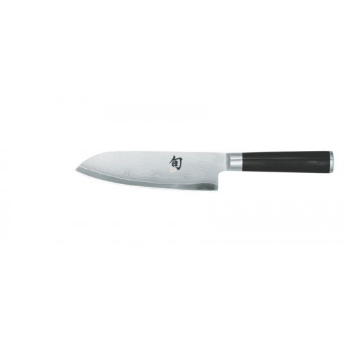 Coltello Santoku per mancini Kay serie Shun Classic lama cm.18, impugnatura cm.12,2 La serie dei coltelli Shun appartiene alla gamma dei coltelli damascati e riscuote grande successo presso l‘élite culinaria e gli ambiziosi cuochi professionisti. I coltelli professionali Shun sono realizzati con uno strato interno in acciaio VG MAX estremamente resistente alla corrosione, molto duro (61±1 HRC, 1,0% di carbonio, 1,5% di cobalto) che mantiene la lama sempre affilata in modo ineguagliabile. La parte esterna delle lame è realizzata in acciaio inossidabile damascato di nuova generazione, a 32 strati. Grazie alla superficie convessa della lama e all’affilatura manuale di ogni coltello Shun si ottiene un taglio incomparabile, che lascia scivolare il coltello anche attraverso gli alimenti più difficili da tagliare. Questo filo, abbinato con il peso bilanciato del coltello, consente di lavorare senza fatica. Le venature del damasco conferiscono ad ogni coltello SHUN un carattere speciale così che ciascun coltello diviene un pezzo unico – un‘opera d‘arte che racchiude in sé artigianato, tecnica e design. La tecnica di lavorazione del coltello da cucina Shun nasce dall‘arte dei fabbri giapponesi delle spade dei samurai adattando la produzione delle lame allo stile occidentale offrendo così, anche ai cuochi europei, le forme a loro familiari realizzate con la qualità tradizionale giapponese.I coltelli Shun non sono lavabili in lavastoviglie e devono essere lavati a mano e subito asciugati. Consiglio: quando la lama comincerà a perdere la sua affilatura dovrebbe essere solamente affilata con una pietra affilacoltelli o con un utensile (non con un acciaino).