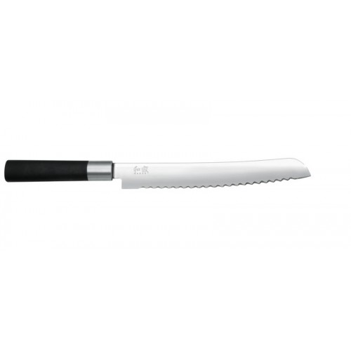Coltello Sega cm.23, ottimo per il taglio del pane - I coltelli Kay della linea Wasabi Black, devono la loro fama alla lama tagliente come l'omonimo rafano giapponese. Lama liscia, manico nero - questi sono i coltelli della linea Wasabi. Inventati in Giappone, i coltelli presentano, nella forma e nella qualità delle lame, le caratteristiche dell’estremo oriente. Le lame lisce in pregiato acciaio inossidabile presentano una durezza di 58±1 HRC e un’affilatura su entrambi i lati - ll manico lungo 12,6 cm è stato appositamente creato per la linea Wasabi.