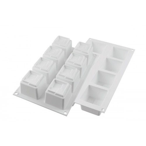 Si ispira al design hi-tech lo stampo 4Kuadro di Silikomart Professional. Linee rigorose ma allo stesso tempo armoniose, si uniscono insieme per creare una forma davvero particolare e ricercata. 8 cavità da 150 ml ciascuna vi permetteranno di realizzare delle monoporzioni uniche e originali.Dimensioni: 60x60 h 50 mmVolume 8x150 ml Tot. 1200 ml