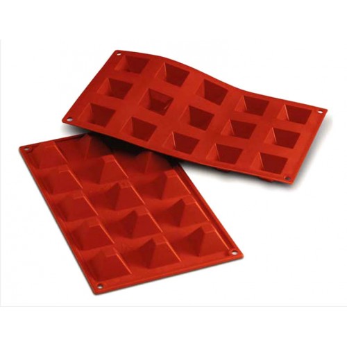 Stampo in silicone Piramide mignon mm.36x36 altezza mm.22h. 15 forme per foglio Confezione da 2 pezzi. Sono stampi pratici , ideali sia per la surgelazione che per la cottura. Possono essere utilizzati a temperature che variano da -50°C a +260°. Facili da lavare sia a mano che in lavastoviglie. Formato 17,5x30cm equivalente a 1/3 Gastronorm ed a 1/4 del formato della teglia da pasticceria(cm60x40). Realizzati in purissimo silicone conforme alle norme internazionali che regolano l utilizzo di materiali destinati al contatto con sostanze alimentari.